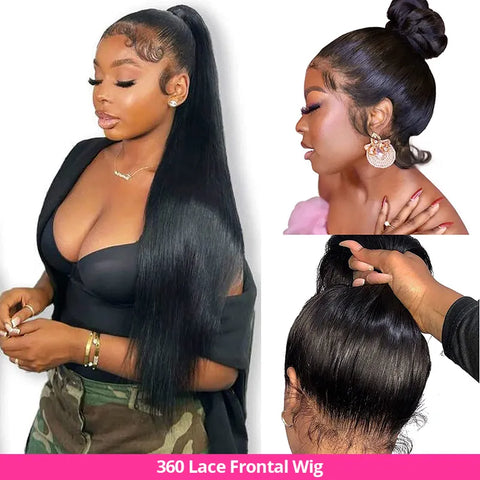 The first product is the 360 lace frontal wig, there is a lace circle around the whole head. In the summer, this is the best way to get a ponytail style for this wig. See how it looks after installation: